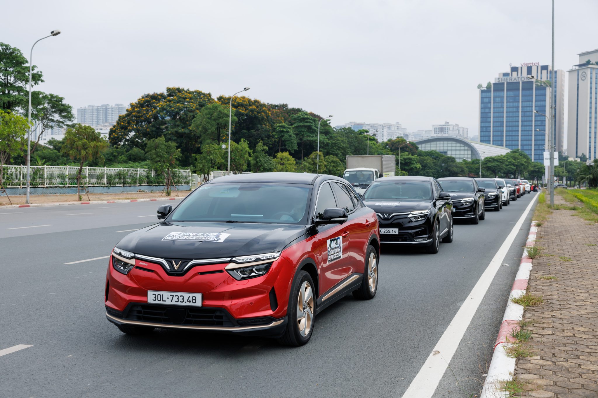Ngay sau màn xếp xe ấn tượng, đoàn VF 8 tiếp tục thực hiện roadshow qua các tuyến phố chính của Hà Nội.