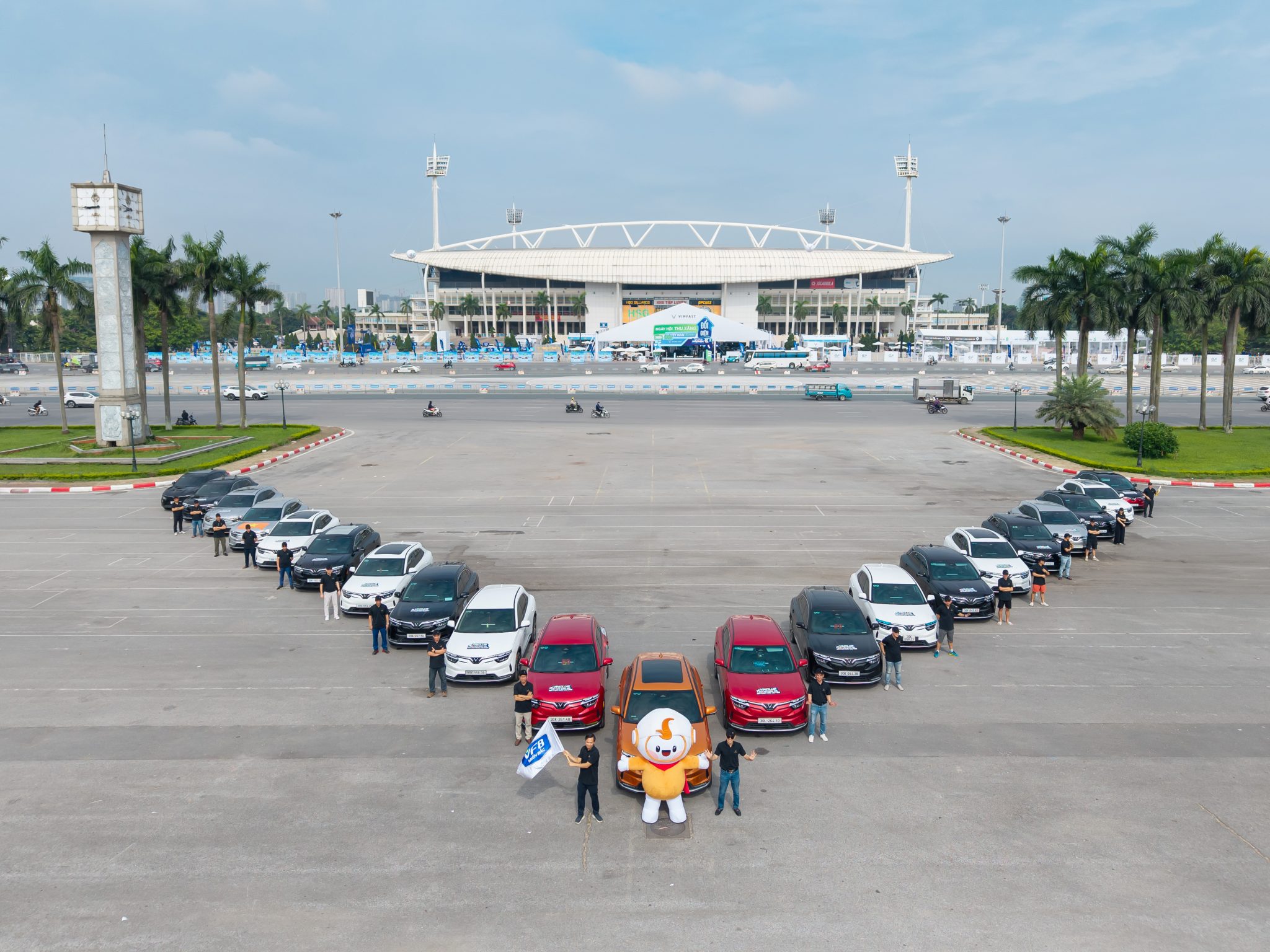 Trong khuôn khổ sự kiện, các thành viên Hội VF 8 miền Bắc đã mang đến một màn trình diễn ấn tượng với hơn 20 chiếc VF 8 được xếp thành hình chữ “V” ngay trước sân vận động Mỹ Đình.