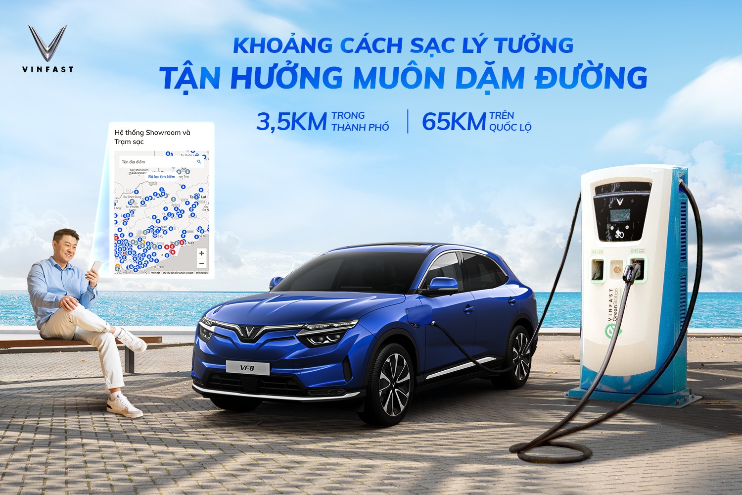 VinFast cũng đang mở rộng hệ thống trạm sạc trên toàn quốc, giúp người dùng dễ dàng tiếp cận nguồn điện mọi lúc, mọi nơi – từ đô thị đến các khu vực ngoại thành.